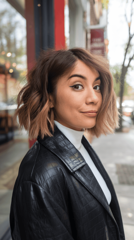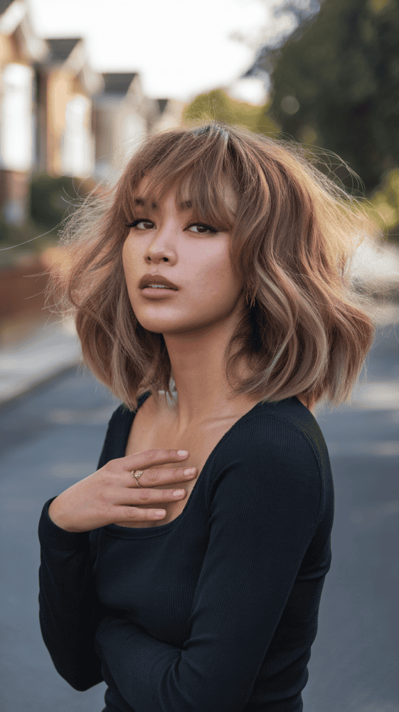 The wavy lob hits that sweet spot—not too short, not too long. It’s an easygoing style that still looks cool.