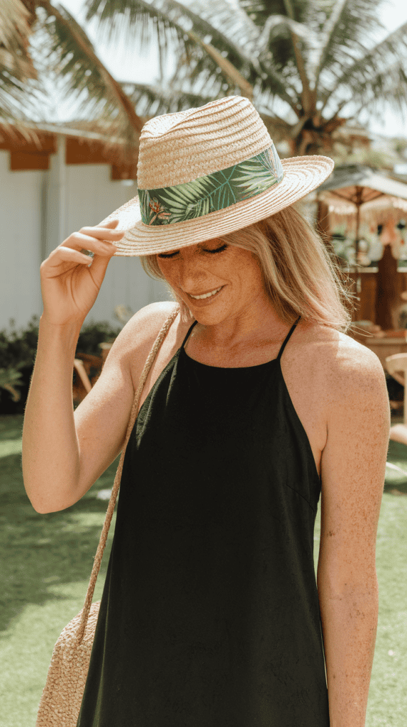 It keeps the sun out of your eyes and pairs well with bright or floral prints. Honestly, it’s a simple way to boost your look, whether you’re going casual or semi-formal.