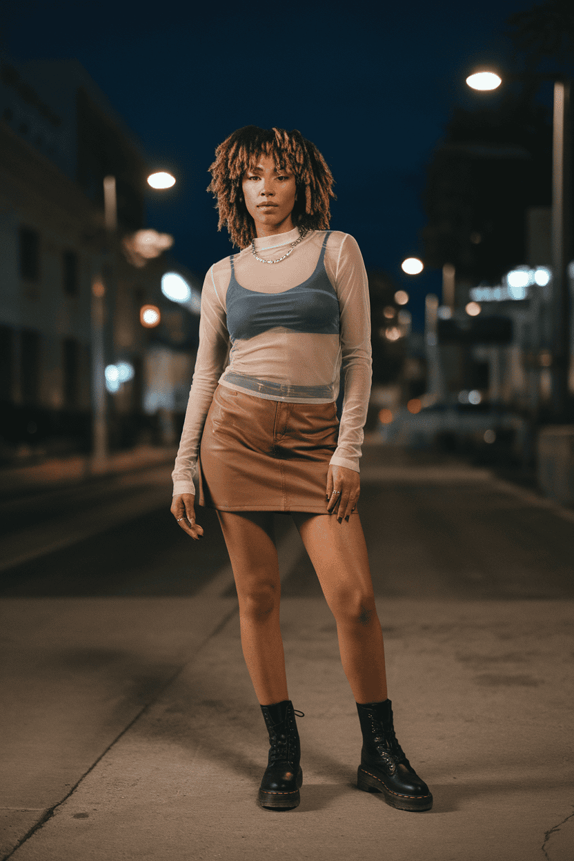 Wear a sheer mesh top with a mini skirt for a fun, slightly daring vibe. It’s a good way to show off a bit of skin without going overboard.