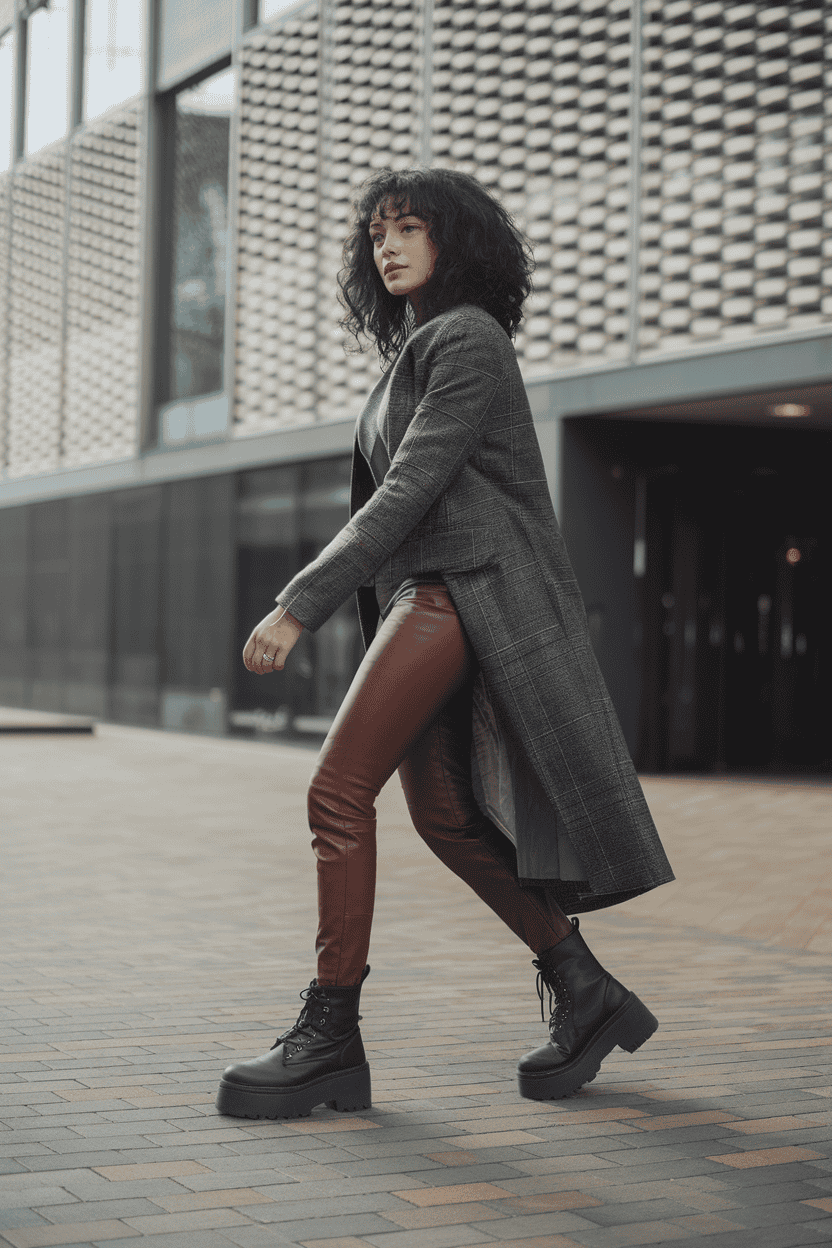 Chunky platform boots and leather leggings? That’s how you add edge. The thick soles give you height and a cool vibe, but your feet won’t hate you.