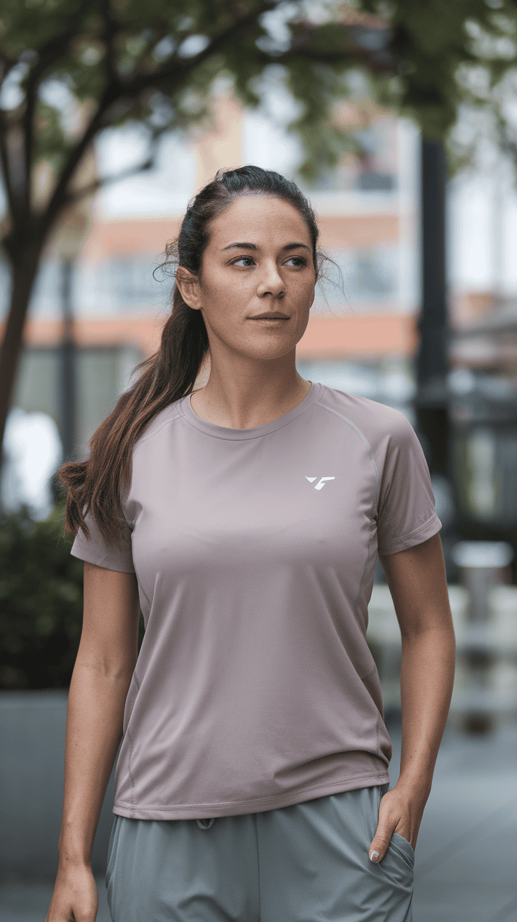 Go for a tee that feels light and lets your skin breathe. Cotton or moisture-wicking fabrics are your best bet for keeping cool.