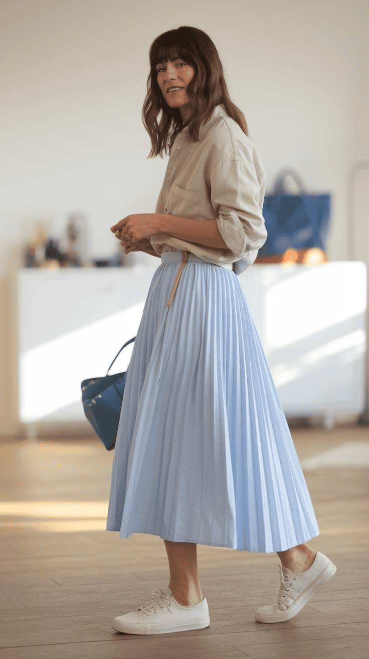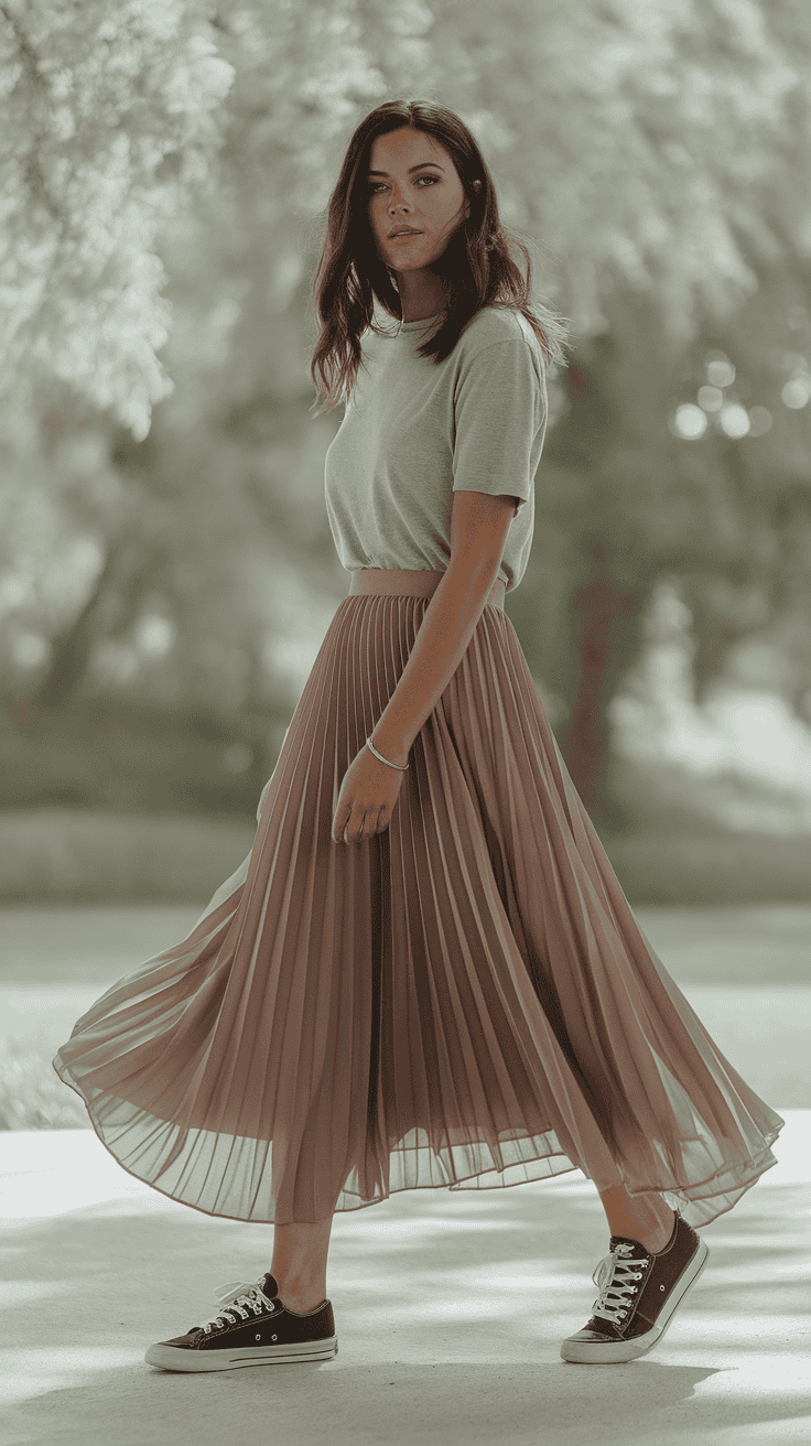 A flowy pleated skirt is a fun pick for park days. It moves with you, so you’re not stuck feeling restricted while walking or waiting in lines.
