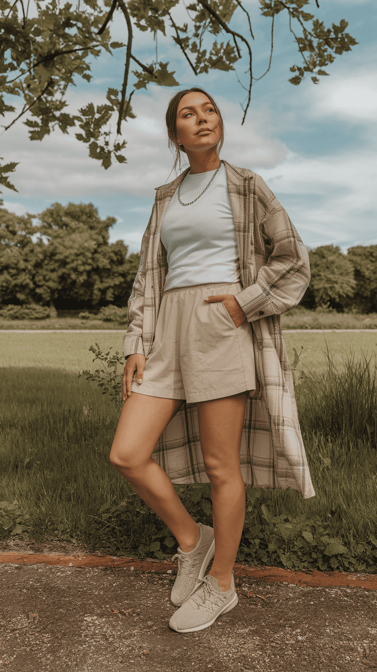 Pair it with a flowy dress or just shorts and a tee. Sandals or sneakers both work—whatever’s comfiest for you.