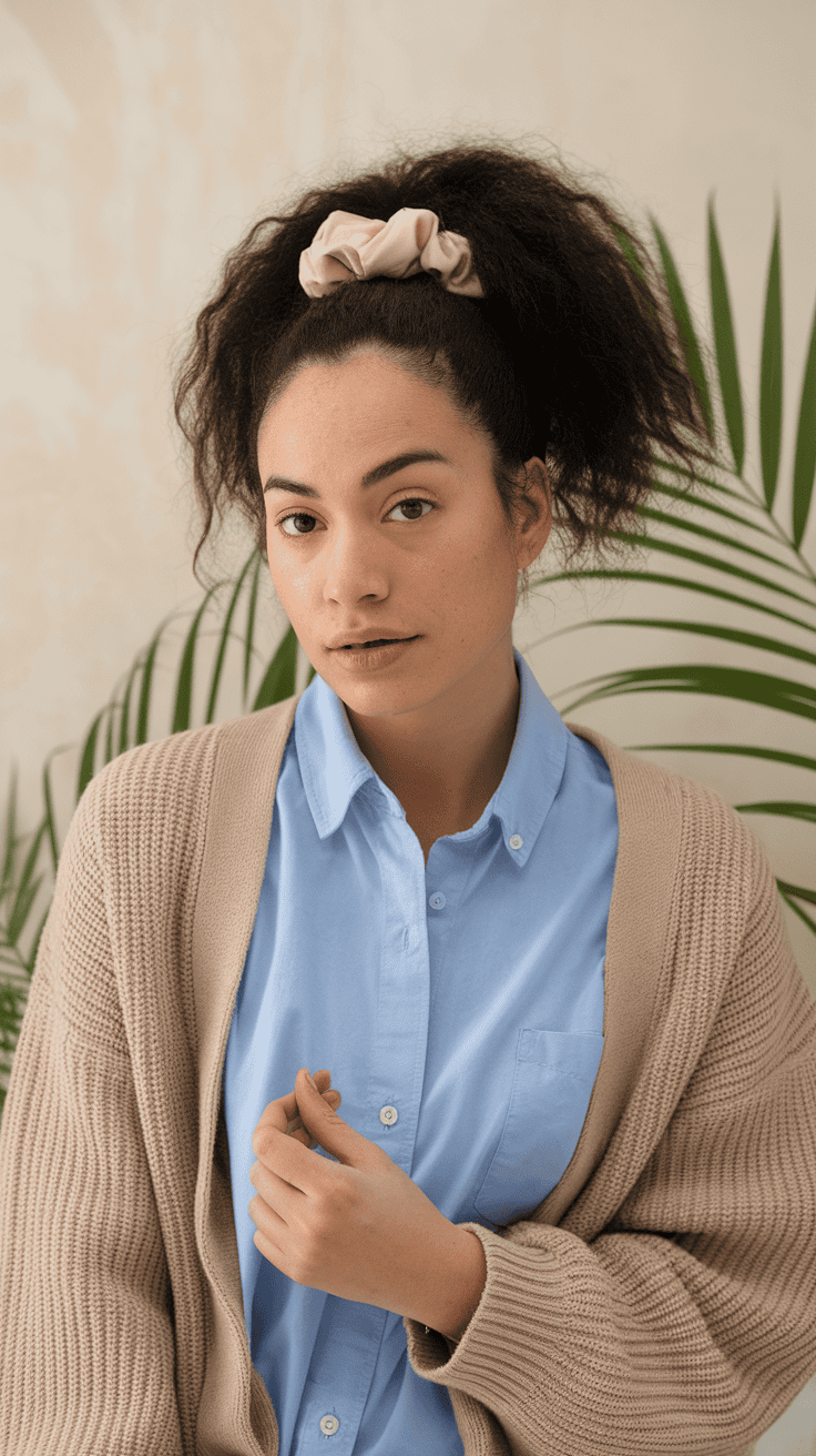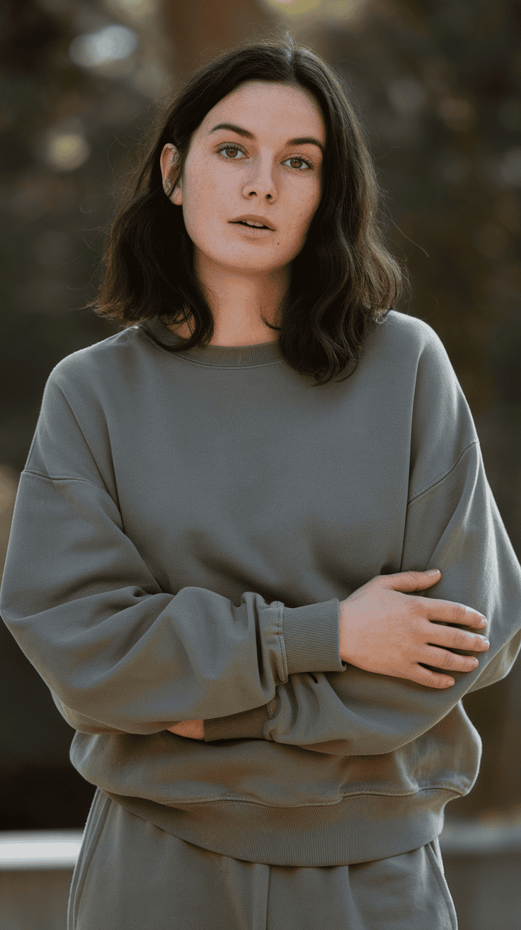 Pair it with high-waisted jeans or joggers for a comfy, casual vibe. Add sneakers and maybe a hat for a look that’s cozy but still cool.