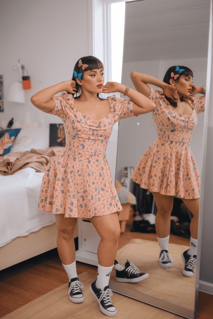 Pair with a choker necklace—maybe black or lace for that classic edge. Boots or strappy heels finish it off. Couldn’t be easier, honestly.
