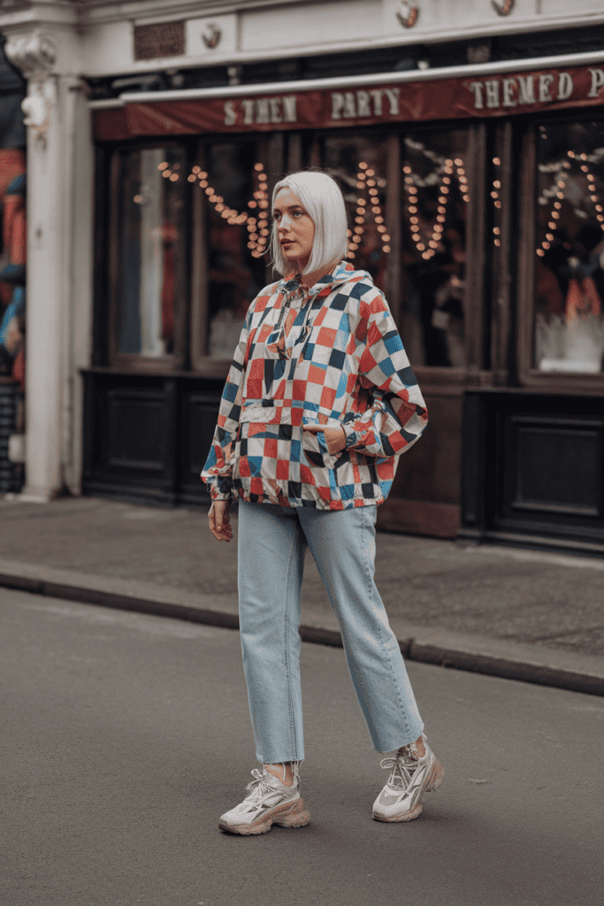 Bright colors and wild prints will give your outfit that classic 90s energy. Pair it with simple jeans or track pants to keep the look balanced.