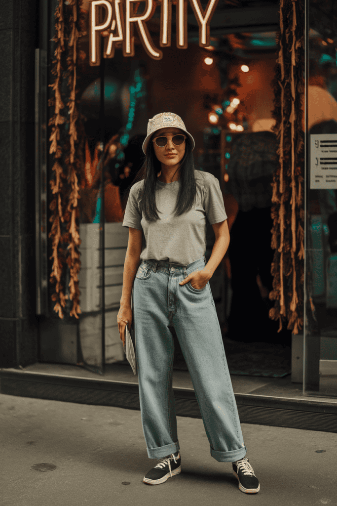 Nothing beats a bucket hat with big sunglasses for a 90s party. It’s cool, laid-back, and just a little bit quirky.