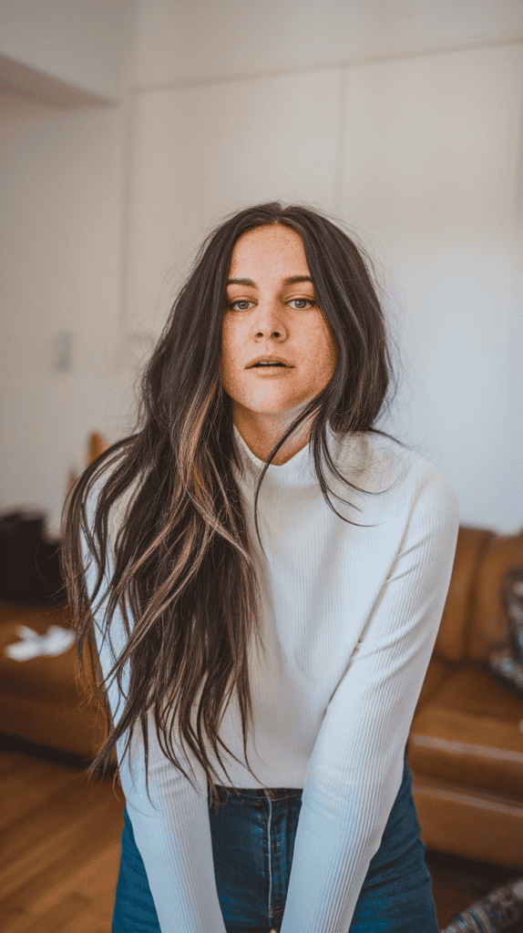 Healthy shine and a bit of depth—this look works whether your hair’s medium or long.