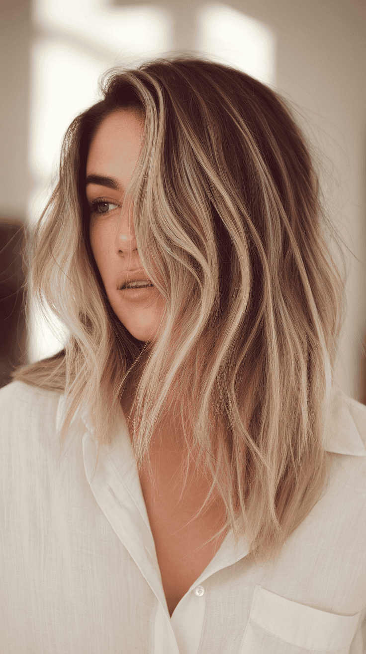 The balayage technique blends the blonde smoothly into your base color. It adds depth and keeps the style looking fresh and lively.