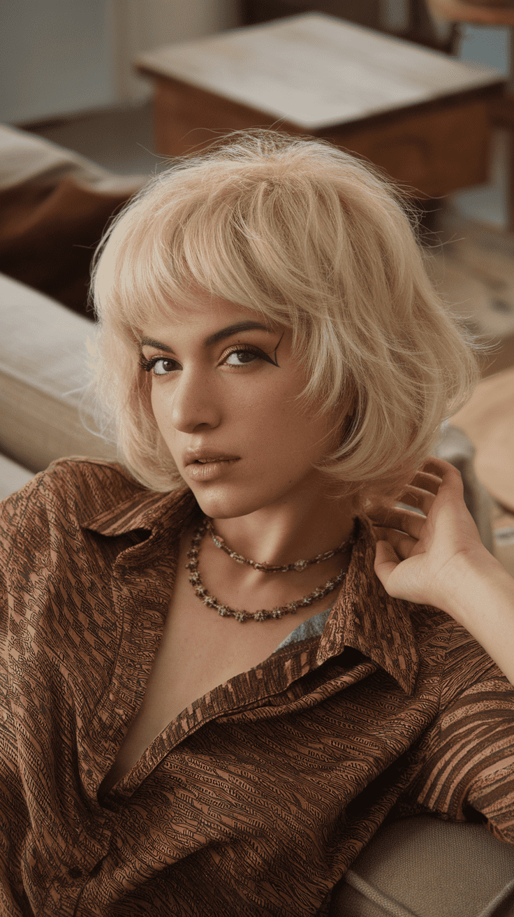 Craving something that feels both fresh and nostalgic? The blonde wolf cut with ‘70s vibes is a great pick.