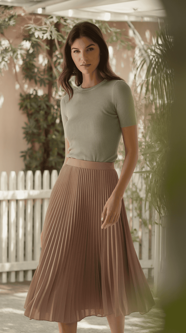 Pair a flowy midi skirt with a fitted knit top for a comfy, cute vibe. The snug top makes the skirt look intentional, not just thrown on.