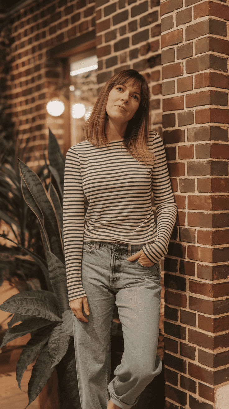 Try a striped long-sleeve tee with cuffed boyfriend jeans for a chill, put-together vibe. It’s fun without being fussy.