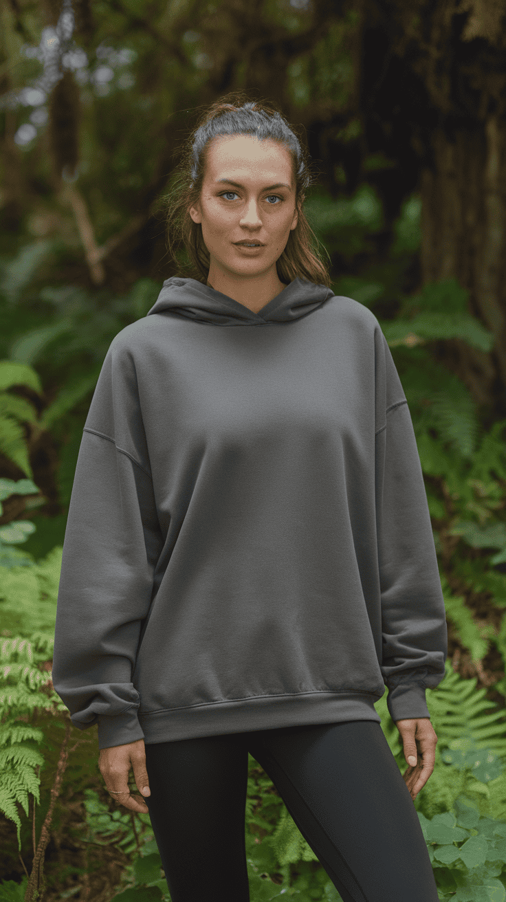 Black leggings and a big hoodie—honestly, who can resist? It’s cozy and gives you all the room you need to bowl (or just lounge).