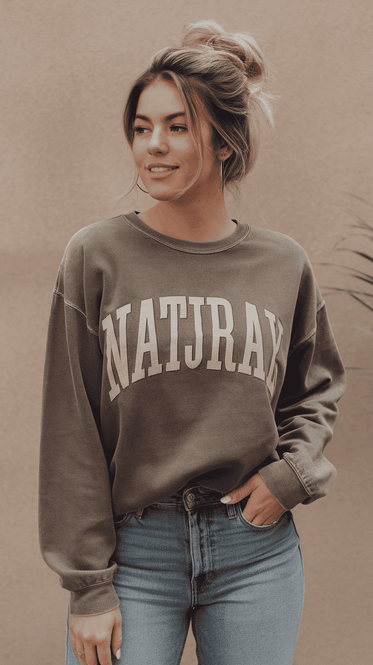 Tuck in the sweatshirt a bit to show your waist. Sneakers or ankle boots finish the look—easy for bowling dates or family hangouts.