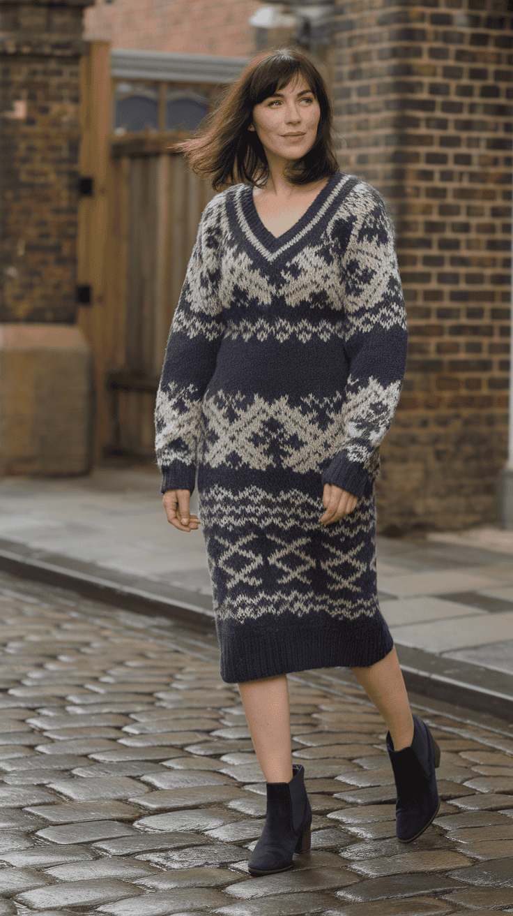Cozy knit sweater dress with ankle boots