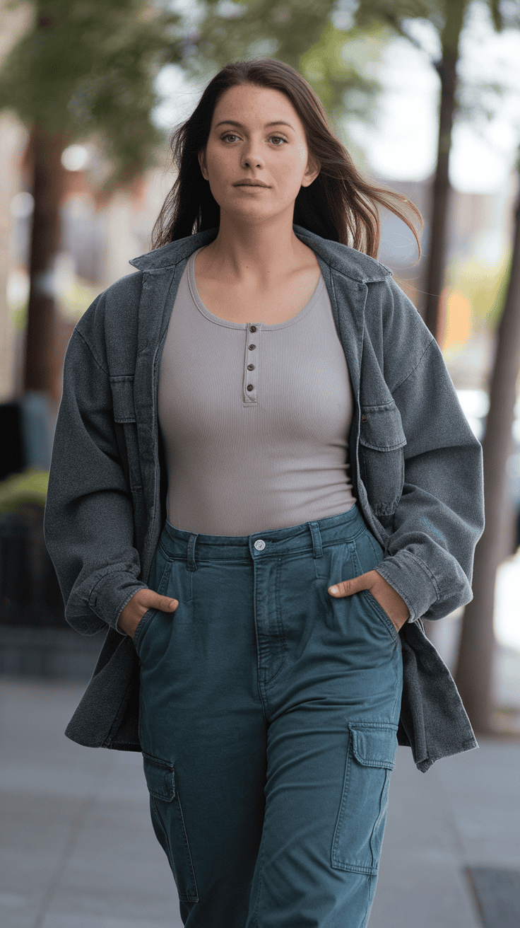 Pair relaxed cargo pants with a fitted henley top for a laid-back vibe. The cargo pants keep things comfy, while the henley adds some shape.