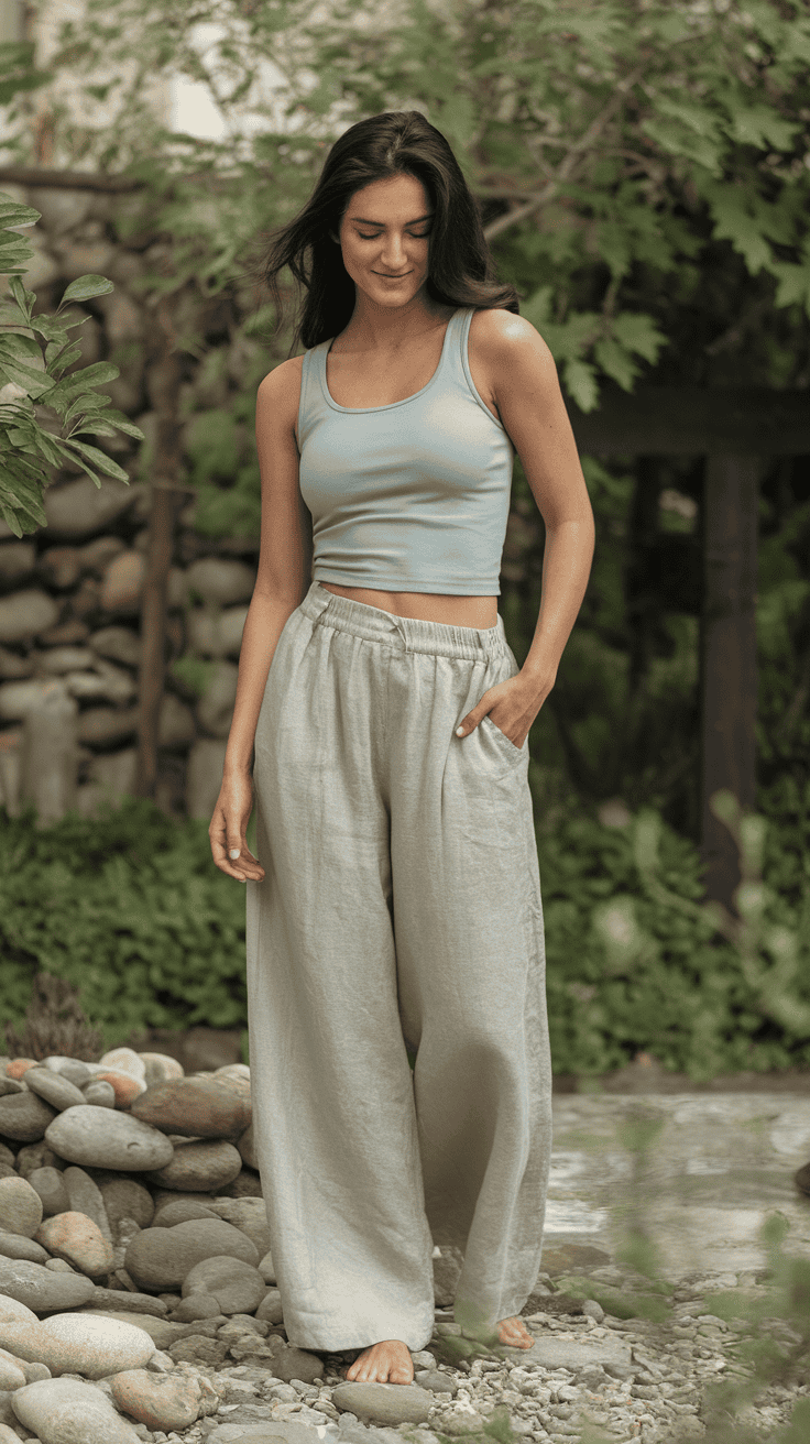 Loose linen pants with a breezy tank top