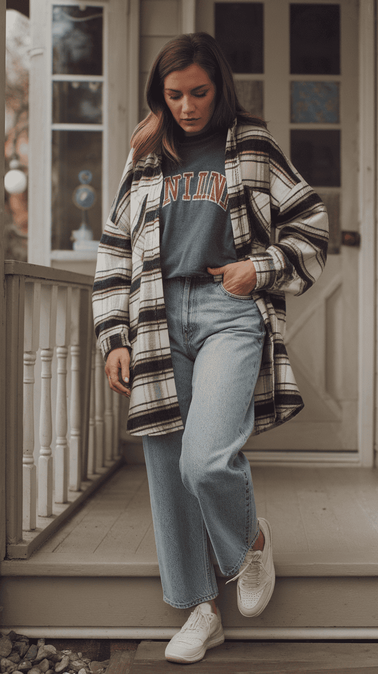 I’m a fan of the oversized flannel layered over a vintage tee. It’s got that easy, lived-in feel—great for bowling dates or just hanging out.