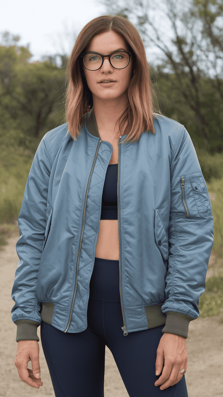 Sleek bomber jacket paired with athleisure leggings