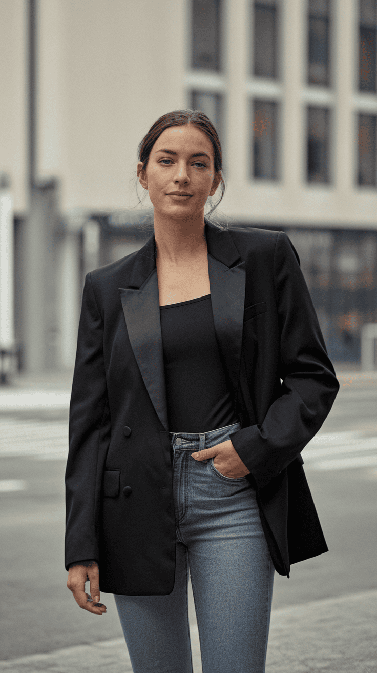 A black blazer and slim-fit jeans are a classic combo. It’s polished but not stuffy, which is honestly the dream.
