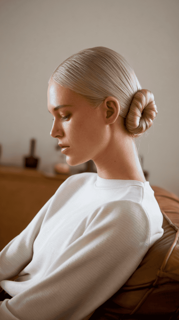 If you want a clean, polished look, go for sleek straight blonde hair. It gives off a simple, elegant vibe without much effort.
