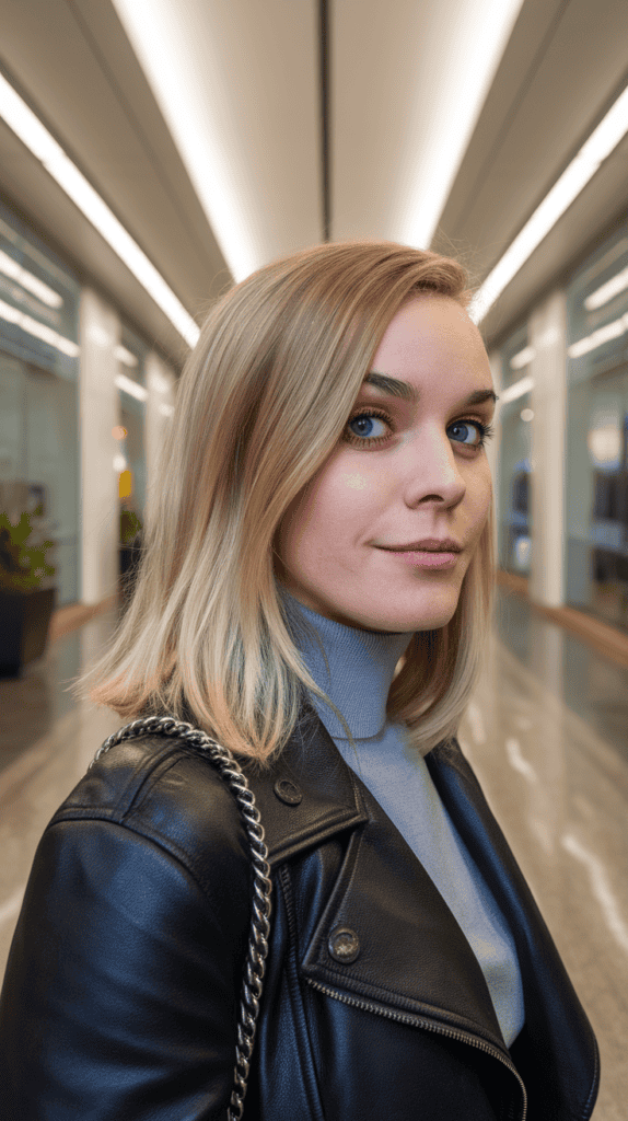 This style works well with lighter blonde shades like champagne or honey blonde. It’s easy to wear and fits your everyday vibe, but still feels polished.