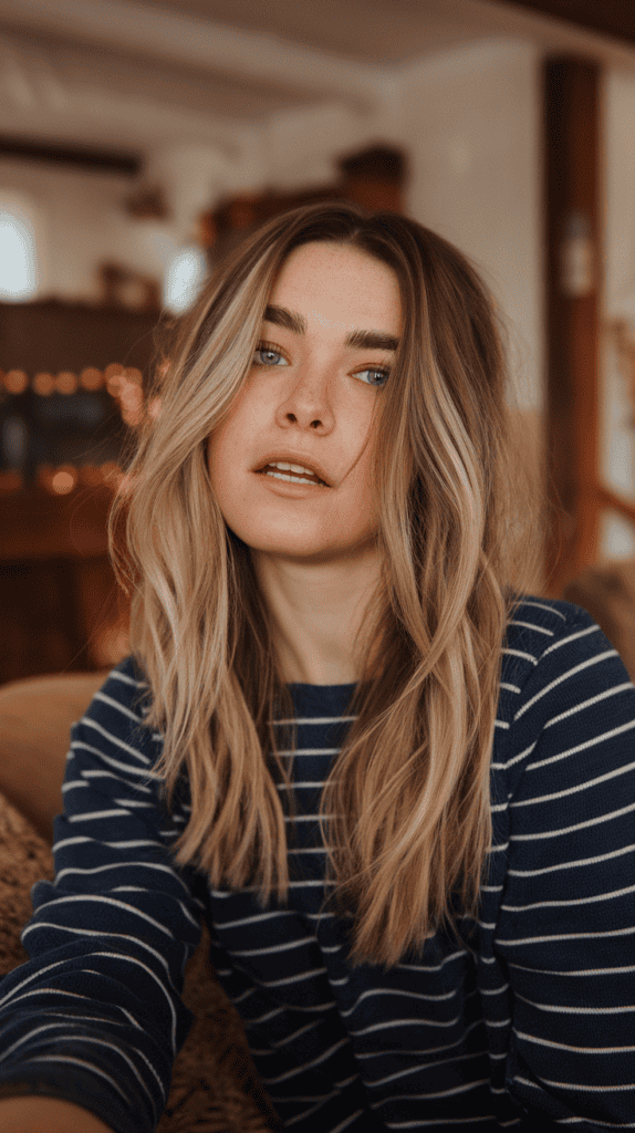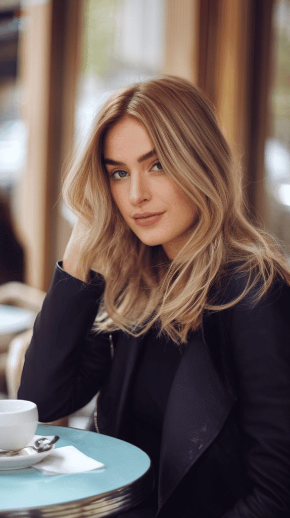 This look is all about subtlety and elegance. Instead of bright or flashy blondes, it uses warm, creamy tones that blend in smoothly.