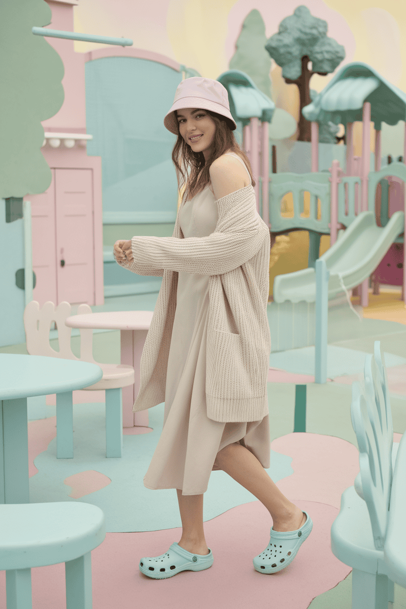 Pair pastel Crocs with a matching bucket hat for a playful, lighthearted vibe. Pastel pink or blue? Yes, please.
