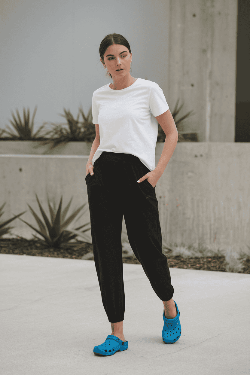 Stick with a simple top, like a white tee, so your Crocs can really shine. Maybe add a fun accessory if you’re feeling it.