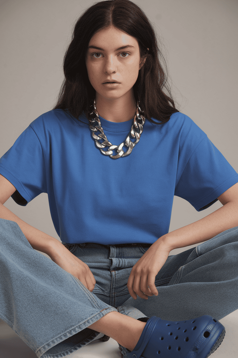 Mixing textures is fun—Crocs feel soft and laid-back, while a chunky necklace adds some edge. Why not play around with it?