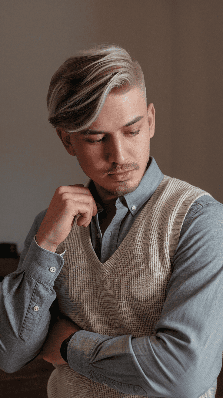 Your sides stay clean with the fade, and the longer back shows off those soft color hints. It’s a chill way to keep things interesting, whether your hair’s straight or wavy.
