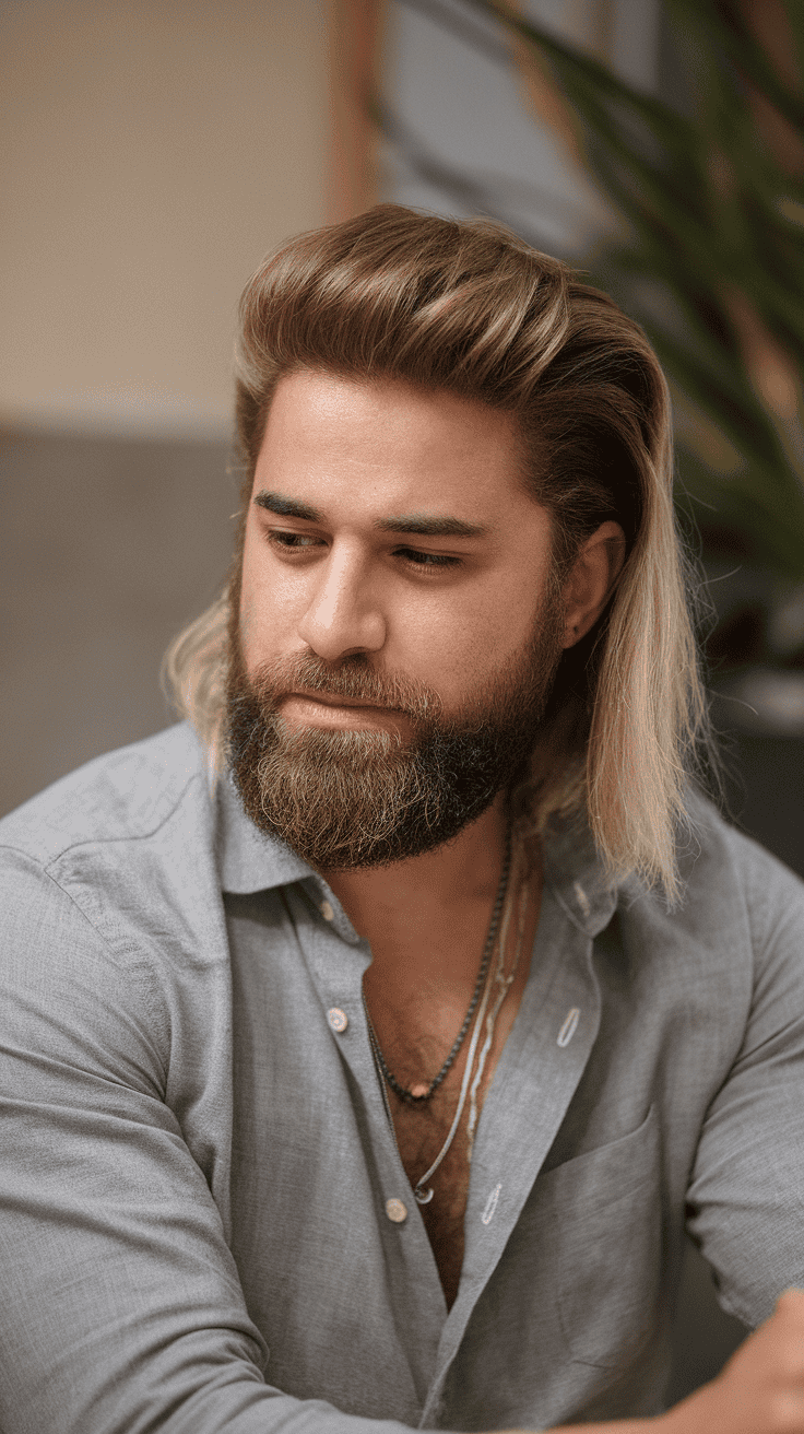 Add a side part for a classic touch, but you still keep the mullet’s edge. Works for straight or wavy hair, and honestly, it’s pretty easy to pull off for most occasions.