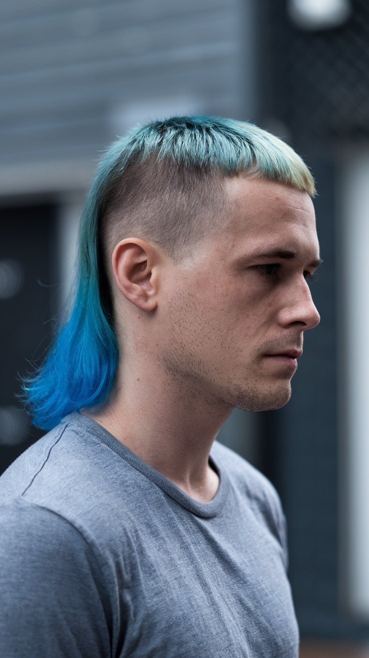 Want to stand out? Throw some bold colors into your faded mullet. Bright reds, blues, even pastels—any of those can make the fade pop.