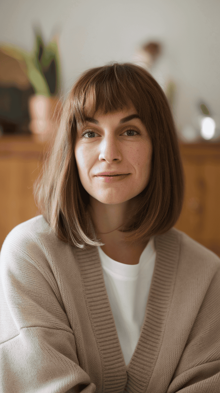 This cut frames your face nicely and works whether your hair is straight or has soft waves. It’s easy to style and looks fresh every day.