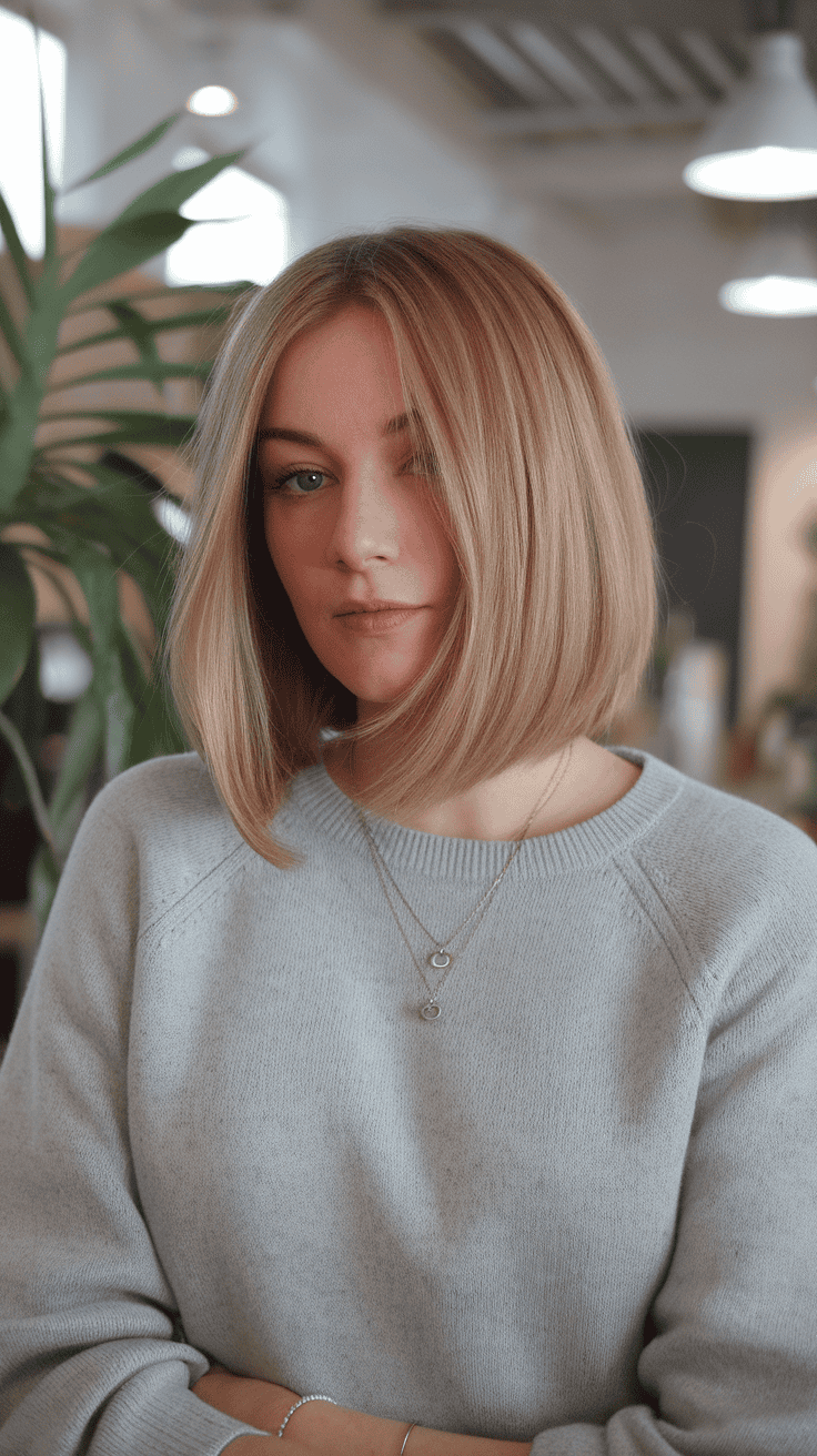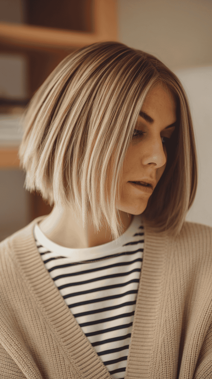 The angled cut combined with subtle color makes your hair appear fuller and adds depth. It’s a simple way to refresh your style without a big change.