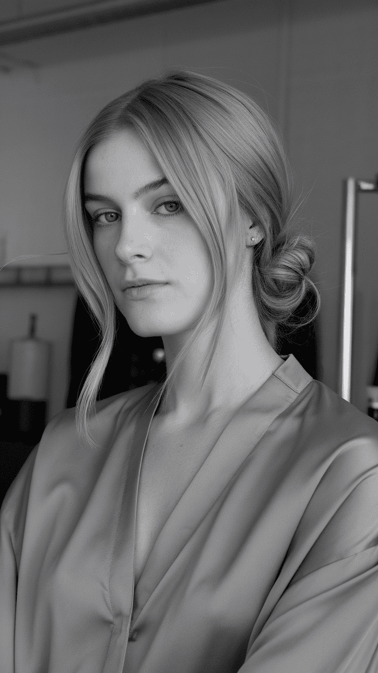 If you want to change up your long angled bob, try a sleek updo. It looks clean and polished, perfect for a special event or work.