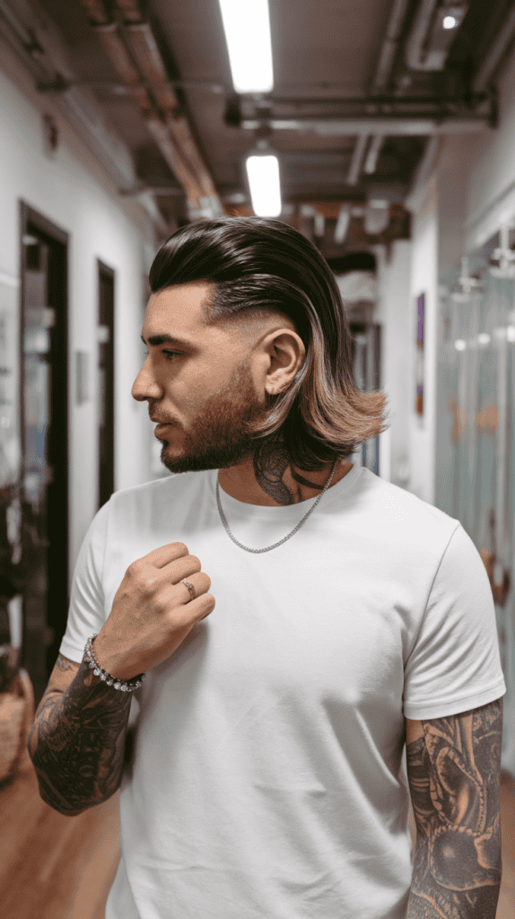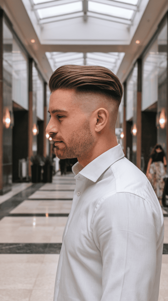 This works for straight or wavy hair. It’s easy to maintain and fits both casual and professional settings. You can play with the fade length to suit your style.