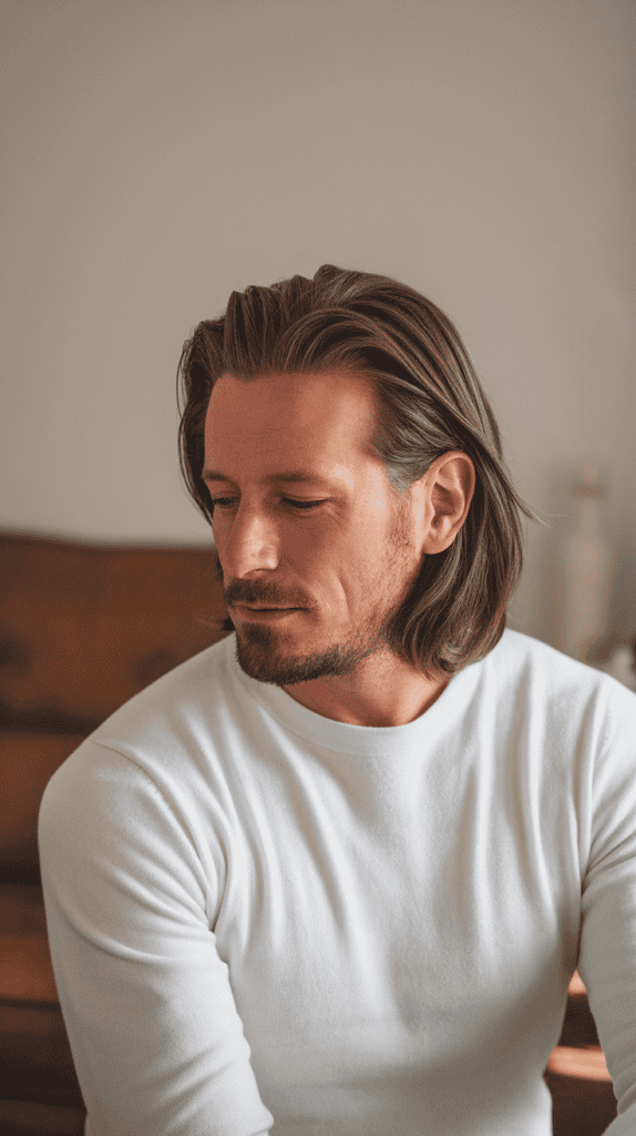 Want a flowy cut that works at the office? Go for medium length with clean sides. A side part makes it look neat but still lets your hair move naturally.