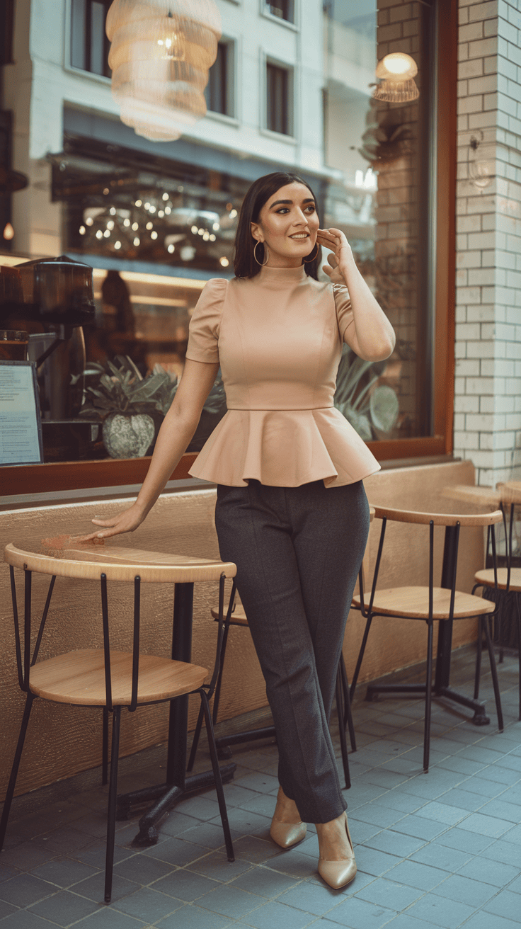 Peplum tops do a similar trick. They flare over your hips, instantly giving you more of an hourglass vibe without adding bulk. Just make sure they fit your upper body and flare out softly at the waist.