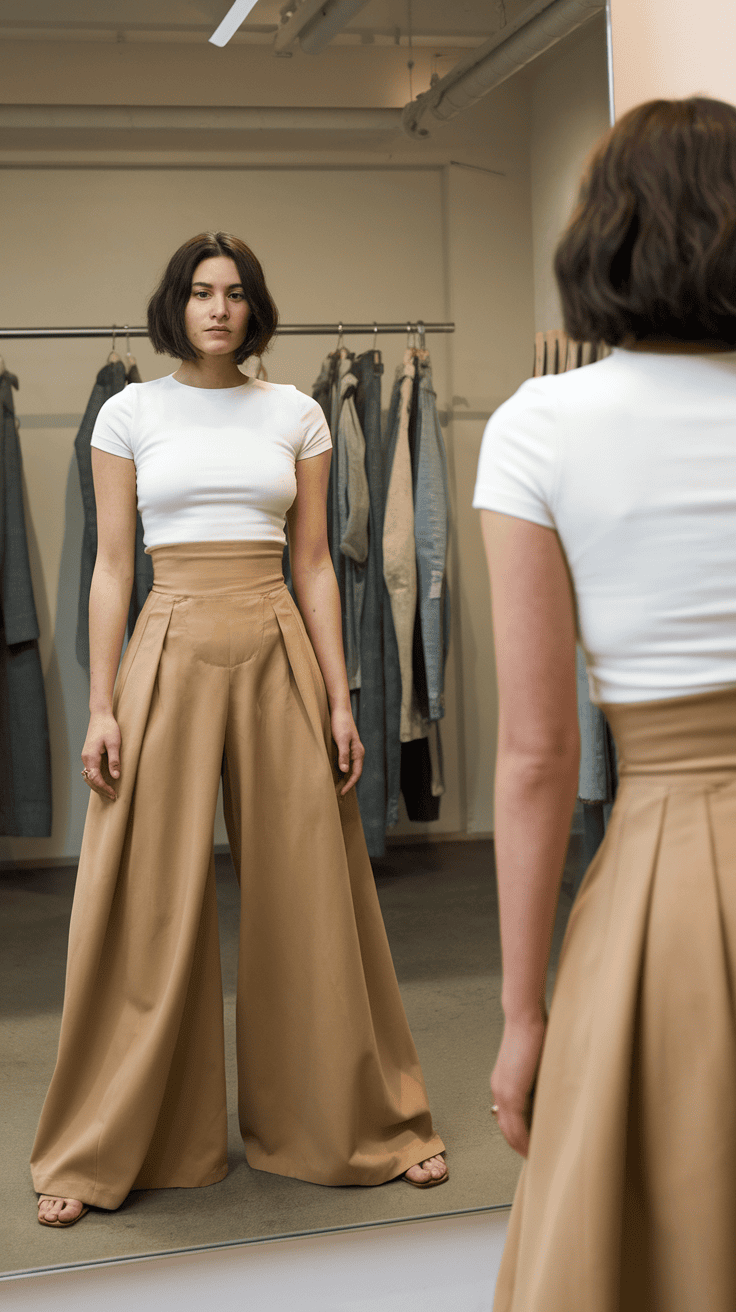 • Wide-leg pants with a high waist—these always make your legs look longer.