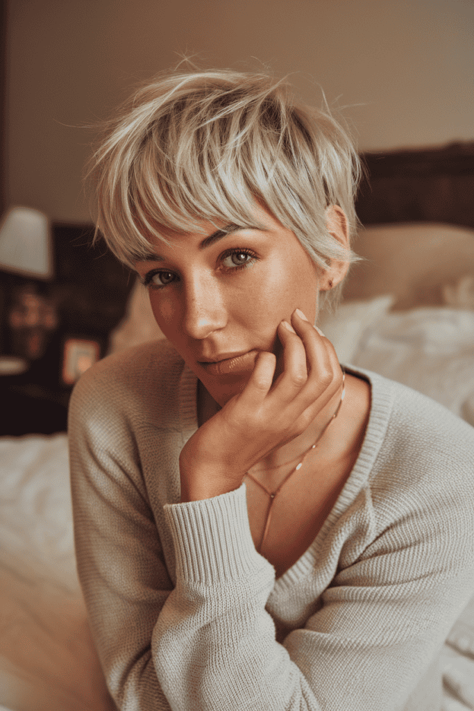If you want something playful but easy, the messy pixie-kitty hybrid cut is a fun option. It mixes short, textured pixie layers with the soft, face-framing feel of the kitty cut.