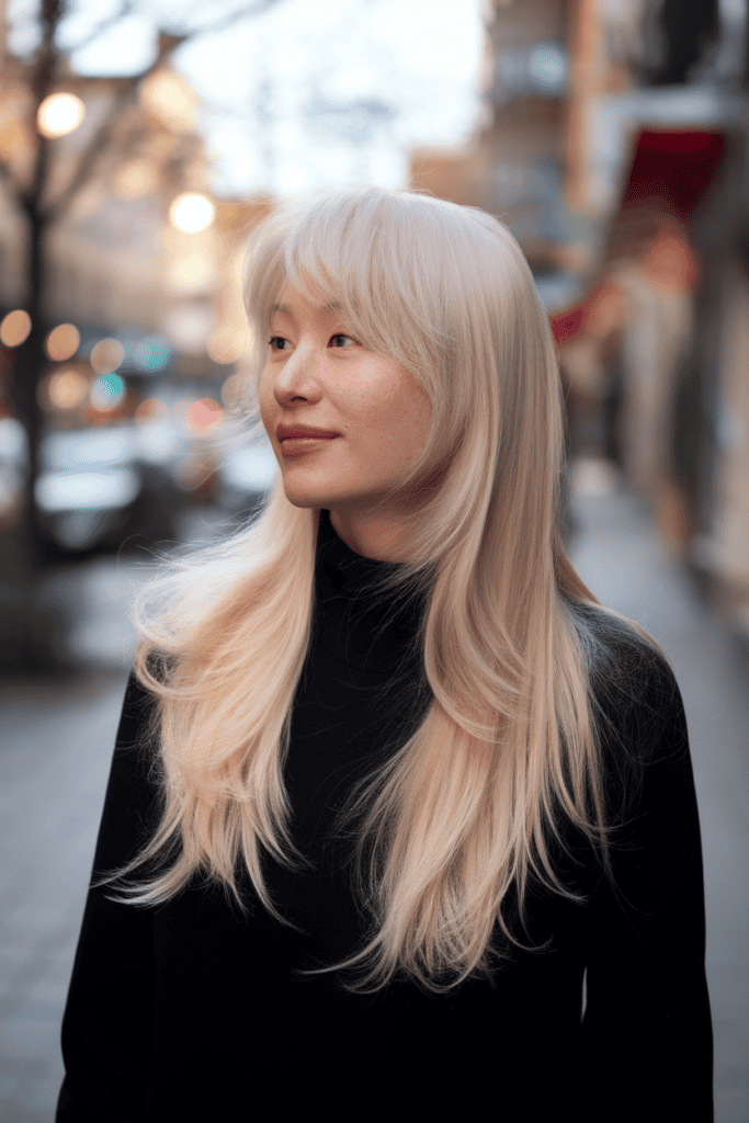 If you love volume and movement, this one’s for you. The contrast between the platinum shade and the choppy layers gives off a cool, edgy vibe that’s easy to style for pretty much any occasion.