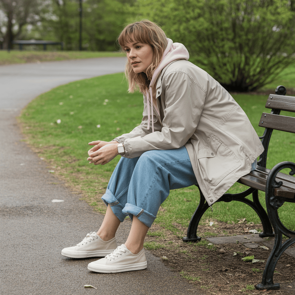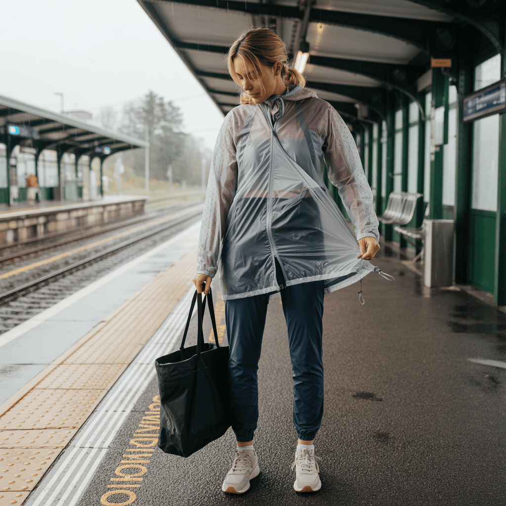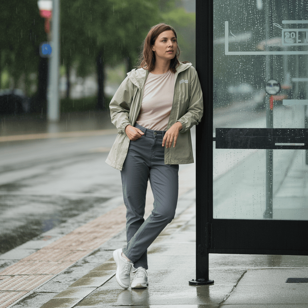 Add a thin sweater or cardigan for warmth—easy to take off if the sun pops out. Top it off with a waterproof jacket or raincoat that keeps water out but won’t make you sweat.