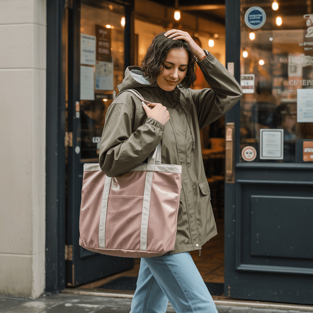 You want a tote bag that keeps your stuff dry on rainy days. Water-resistant bags do just that without looking bulky.