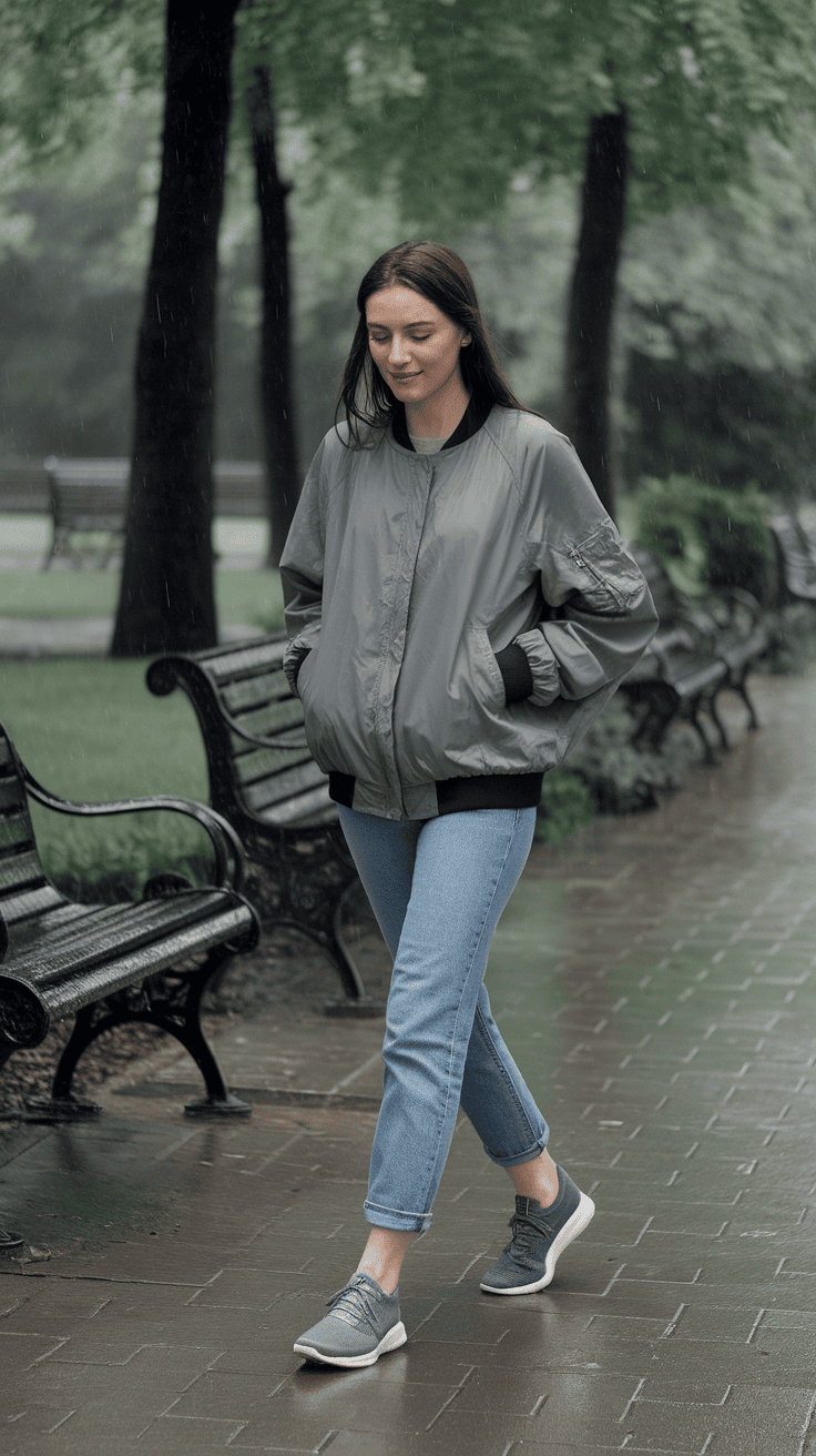 You’ll love how a lightweight waterproof bomber jacket keeps you dry without feeling bulky. It’s great for those spring days when the weather changes quickly.