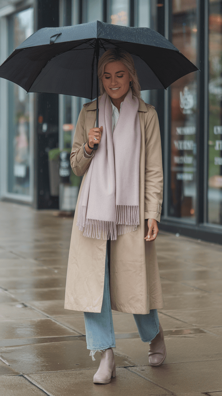 Pair it with jeans or light pants to keep things casual but stylish. It’s such an easy way to look put together on damp days.