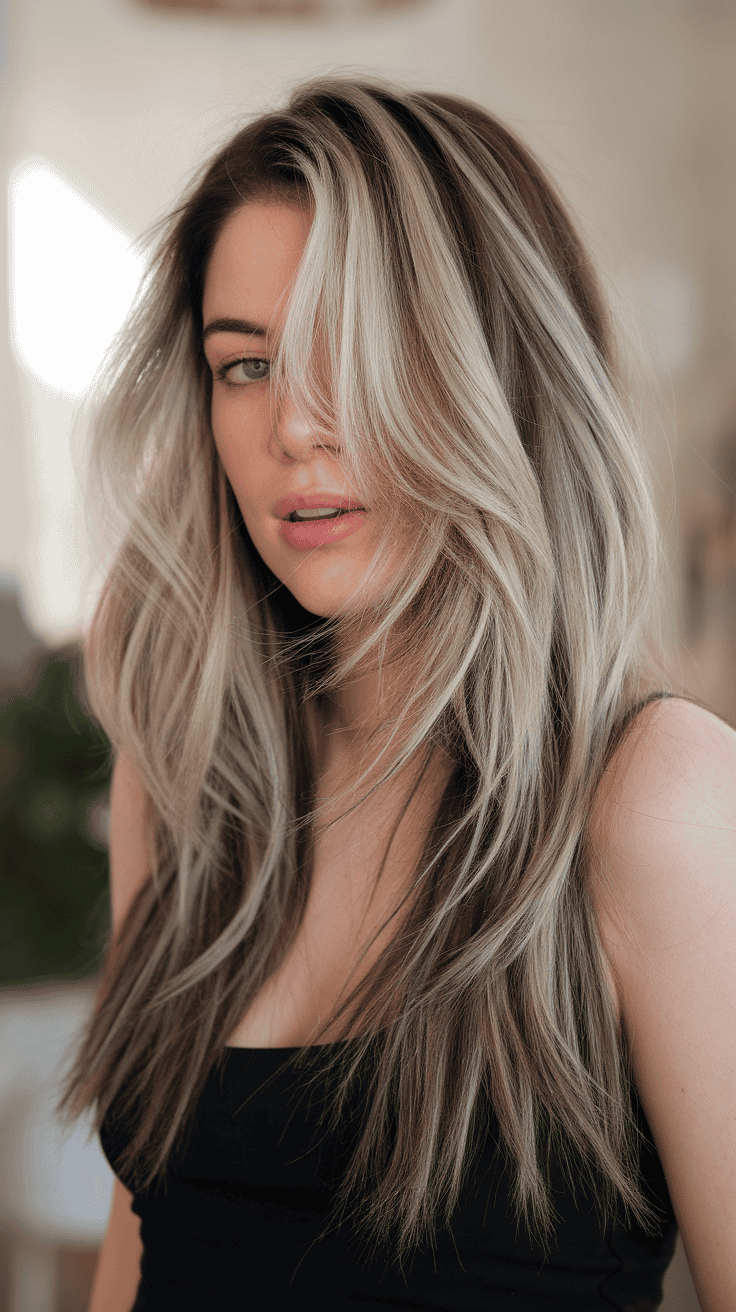 If you want something low-key but still stylish, chunky ash blonde highlights with natural roots work really well. The darker roots make the blonde pop without looking too harsh.
