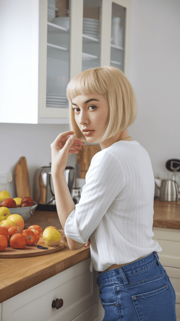 This cut is perfect if you want clean lines but still crave volume. It’s easy to handle and works with both straight and wavy hair.