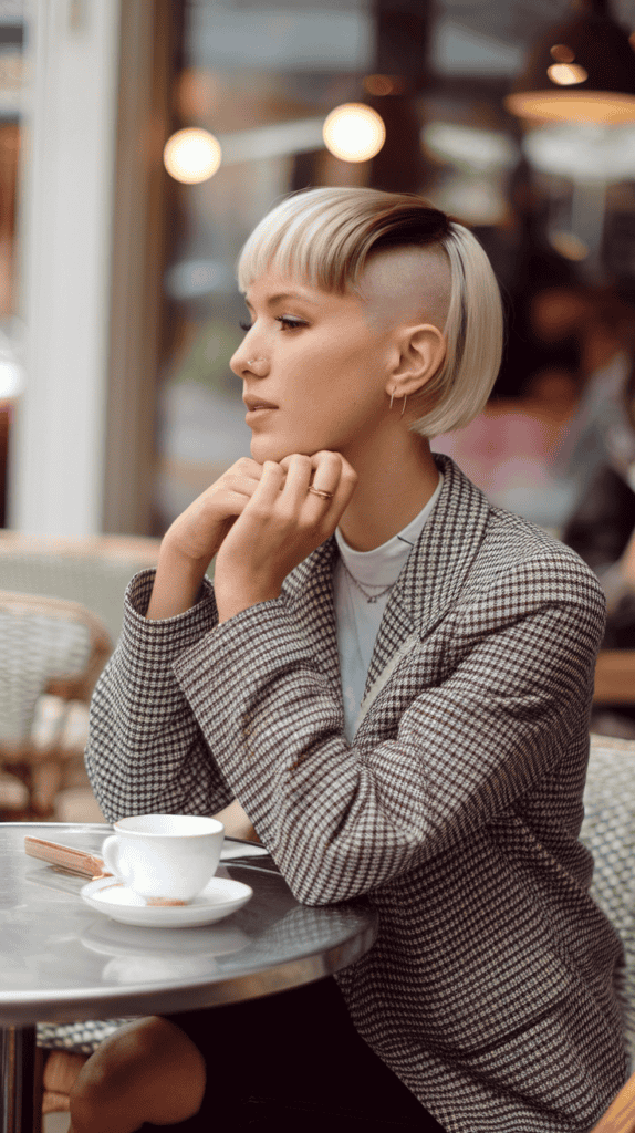 Want a look that’s sharp and a little daring? Go for a sleek micro bob with a shaved nape.