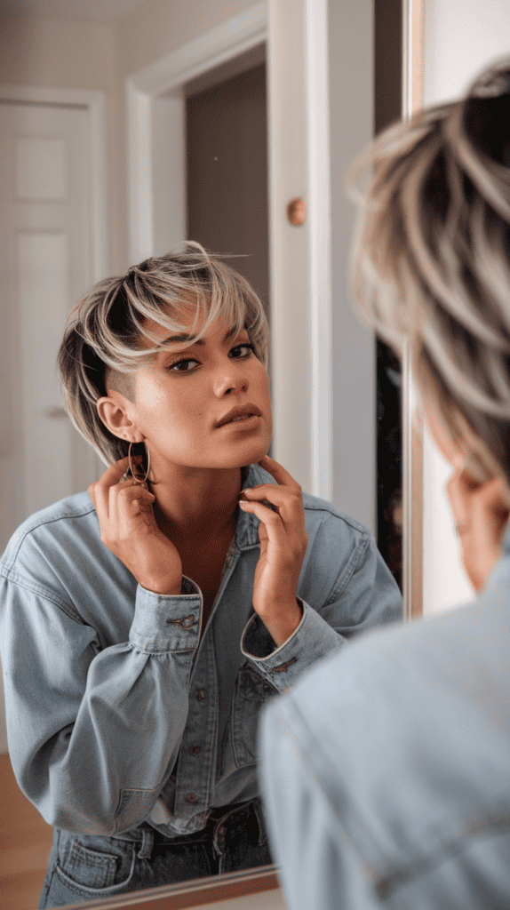 This look feels bold, but you don’t have to commit to a full shave. You get that fun contrast: shaved sides, tousled hair, and a vibe that’s just fresh.